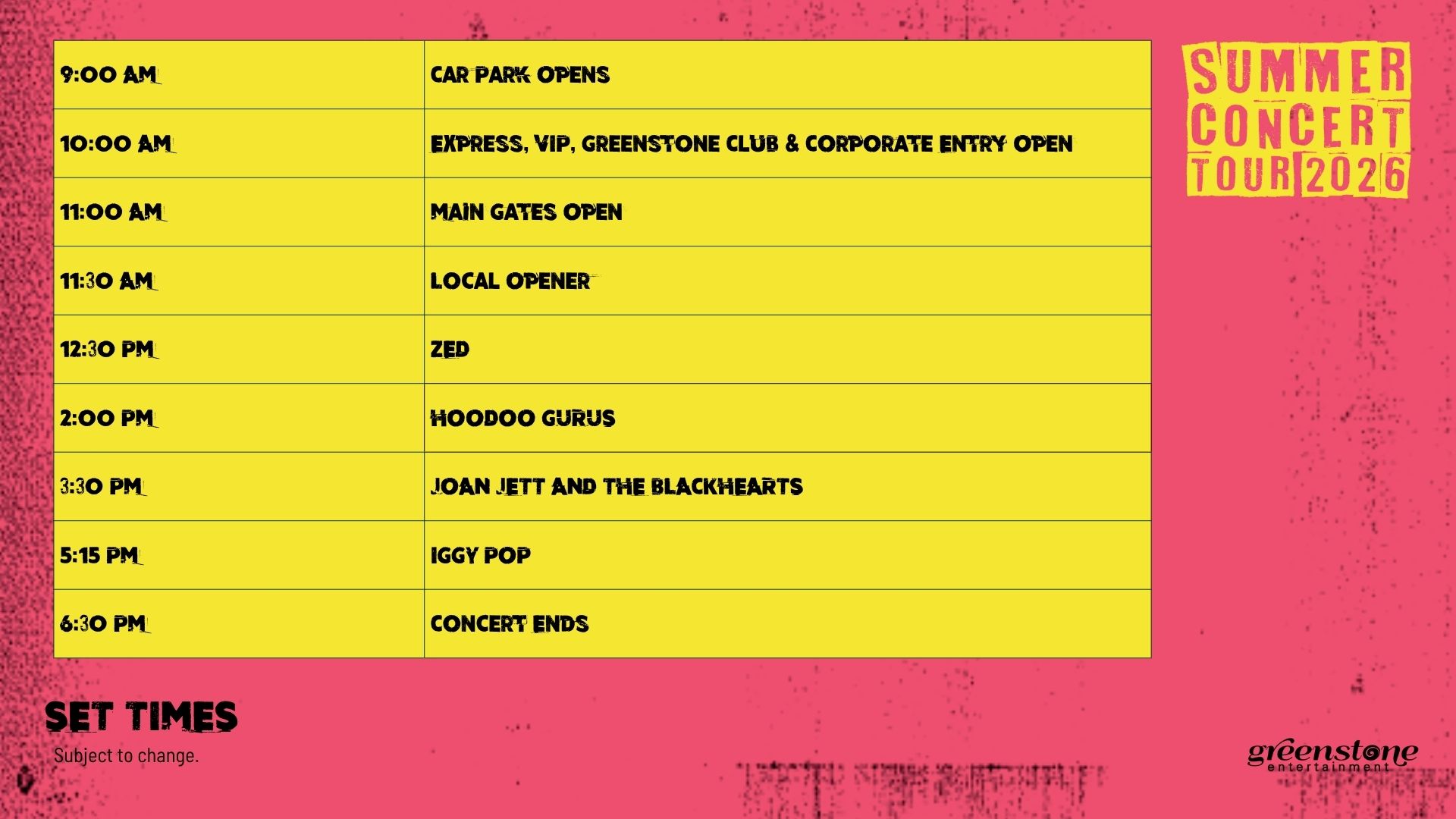 Greenstone Entertainment are proud to present the first stop of the Summer Concert Tour at Taupo Amphitheatre, Taupo, on Saturday, January 24 2026 (Auckland Anniversary Weekend).